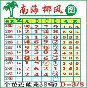 “南海椰风”第1263期推荐版局规律,本期个位38走三步.