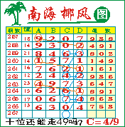 “南海椰风”第1267期推荐版局规律,本期十位49走三步.