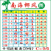 “南海椰风”第1268期推荐版局规律,本期十位05走三步.