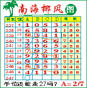 “南海椰风”第1347期推荐版局规律,本期千位27走三步.