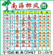“南海椰风”第1278期推荐版局规律,本期个位05走三步.