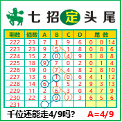 “七招定头尾”第3231期推荐版局规律,本期主攻49千位走第五步.