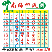 “南海椰风”第1281期推荐版局规律,本期千位49走三步.