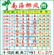 “南海椰风”第1348期推荐版局规律,本期十位27走三步.