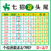 “七招定头尾”第3264期推荐版局规律,本期主攻27个位走第四步.