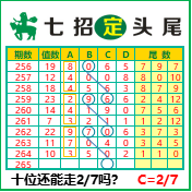 “七招定头尾”第3265期推荐版局规律,本期主攻27十位走第四步.