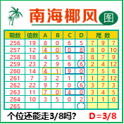 “南海椰风”第3265期推荐版局规律,本期个位38走三步.