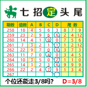 “七招定头尾”第3267期推荐版局规律,本期主攻38个位走第四步.