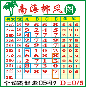 “南海椰风”第1363期推荐版局规律,本期个位05走三步.