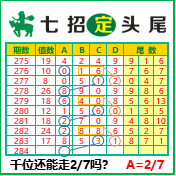 “七招定头尾”第3284期推荐版局规律,本期主攻27千位走第五步.