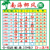 “南海椰风”第1365期推荐版局规律,本期个位38走三步.