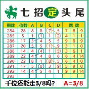“七招定头尾”第3293期推荐版局规律,本期主攻38千位走第五步.