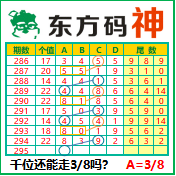 “东方码神”第3295期推荐此隔板规律,本期千位站“38”走第三步.