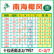 “南海椰风”第3295期推荐版局规律,本期十位27走三步.