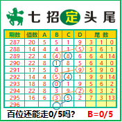 “七招定头尾”第3296期推荐版局规律,本期主攻05百位走第四步.