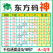 “东方码神”第3296期推荐此隔板规律,本期千位站“05”走第三步.