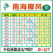 “南海椰风”第3298期推荐版局规律,本期个位27走三步.