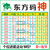 “东方码神”第3298期推荐此隔板规律,本期个位站“05”走第三步.