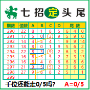 “七招定头尾”第3299期推荐版局规律,本期主攻05千位走第四步.