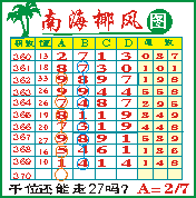 “南海椰风”第1370期推荐版局规律,本期千位27走三步.