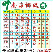 “南海椰风”第1371期推荐版局规律,本期千位27走三步.