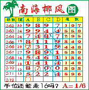 “南海椰风”第1372期推荐版局规律,本期千位16走三步.