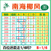 “南海椰风”第3313期推荐版局规律,本期百位16走三步.