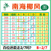 “南海椰风”第3317期推荐版局规律,本期百位27走三步.