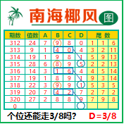 “南海椰风”第3321期推荐版局规律,本期个位38走三步.