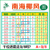 “南海椰风”第3325期推荐版局规律,本期千位38走三步.