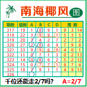 “南海椰风”第3326期推荐版局规律,本期千位27走三步.