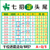 ”七招定头尾“第3327期推荐版局规律,本期主攻05千位走第五步.