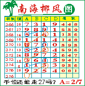 “南海椰风”第1376期推荐版局规律,本期千位27走三步.