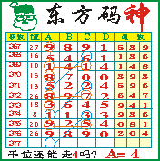 “东方码神”第1377期推荐此隔板规律,本期千位站“24”走第三步.