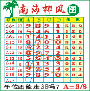 “南海椰风”第1377期推荐版局规律,本期千位38走三步.