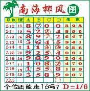 “南海椰风”第1380期推荐版局规律,本期个位16走三步.