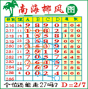 “南海椰风”第1386期推荐版局规律,本期个位27走三步.