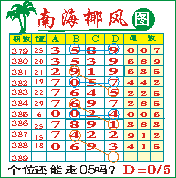 “南海椰风”第1389期推荐版局规律,本期个位05走三步.