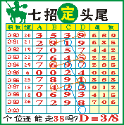 “七招定头尾”第1390期推荐版局规律,本期主攻38个位走第七步.