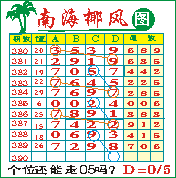 “南海椰风”第1390期推荐版局规律,本期个位05走三步.
