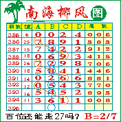 “南海椰风”第1395期推荐版局规律,本期百位27走三步.