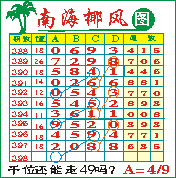 “南海椰风”第1398期推荐版局规律,本期千位49走三步.