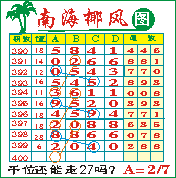 “南海椰风”第1400期推荐版局规律,本期千位27走三步.