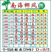 “南海椰风”第1401期推荐版局规律,本期个位05走三步.