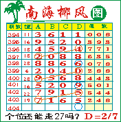 “南海椰风”第1404期推荐版局规律,本期个位27走三步.