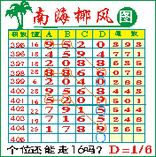 “南海椰风”第1405期推荐版局规律,本期个位16走三步.