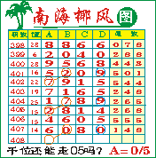 “南海椰风”第1408期推荐版局规律,本期千位05走三步.