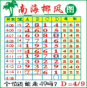 “南海椰风”第1415期推荐版局规律,本期个位49走三步.