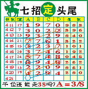 “七招定头尾”第1421期推荐版局规律,本期主攻38千位走第六步.