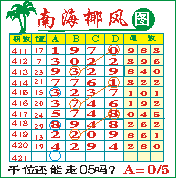 “南海椰风”第1421期推荐版局规律,本期千位05走三步.